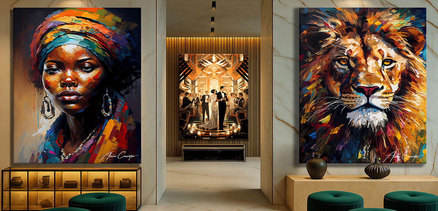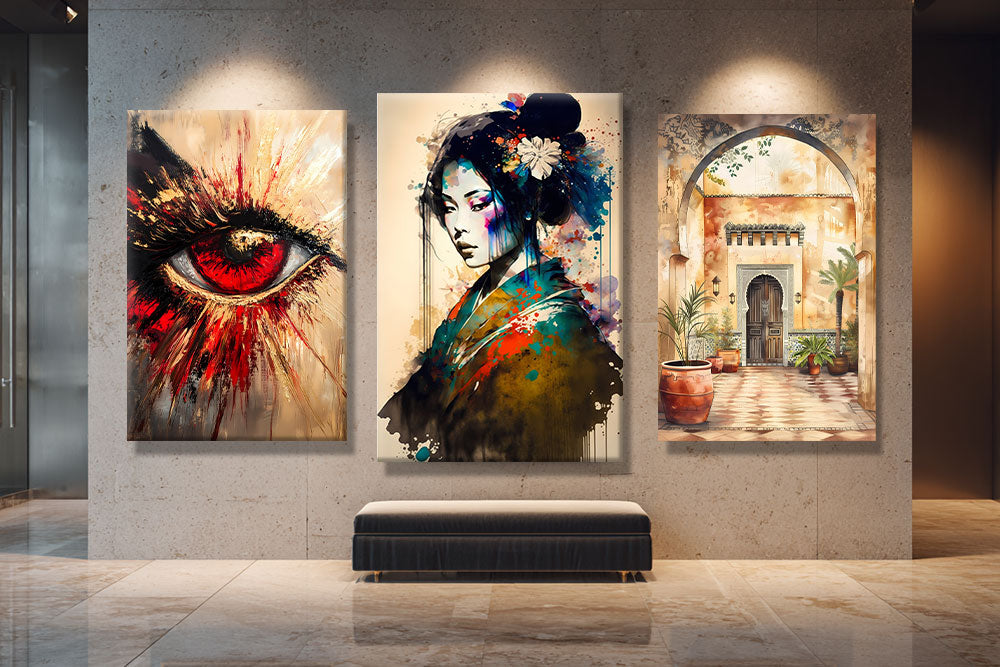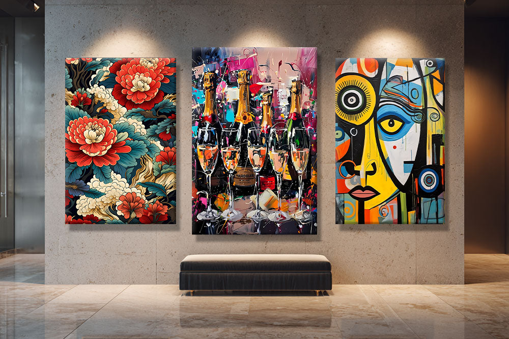 Habillez vos espaces avec élégance grâce à nos tableaux conçus pour sublimer chaque pièce. Les formats horizontaux apportent une harmonie accueillante au salon, tandis que les verticaux insufflent une finesse apaisante à la chambre. Les triptyques, parfaits pour le bureau, incarnent un équilibre raffiné et inspirant. Même la cuisine, la salle à manger et les toilettes se parent d’œuvres uniques, pensées pour magnifier votre intérieur.