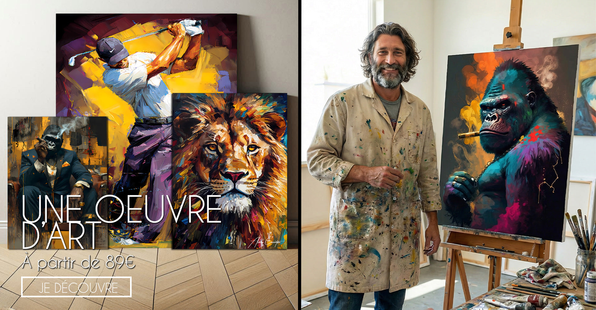 Explorez tous nos styles uniques pour une décoration qui vous ressemble. Du street art audacieux qui fait écho à la culture urbaine, au pop art, chaque œuvre apporte une énergie différente. Nos tableaux modernes se distinguent par leurs lignes épurées, tandis que l'abstrait offre une interprétation libre et artistique. Pour une explosion de nuances, nos créations colorées illuminent vos espaces.