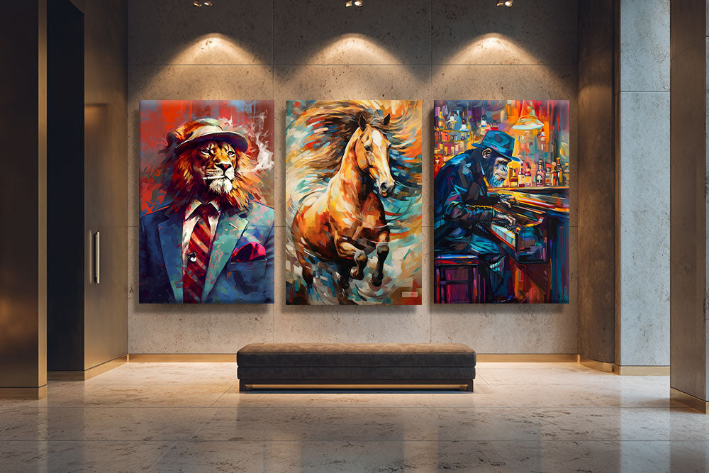Découvrez notre collection d'animaux, parfait pour apporter du caractère à votre intérieur. Nos tableaux lion incarnent la puissance majestueuse, tandis que le singe apporte une touche espiègle et amusante. Pour une décoration pleine de grâce, le cheval est l’icône de l’élégance. Le cerf, symbole de sérénité, évoque la nature paisible, et l'éléphant, avec sa force tranquille, est idéal pour un intérieur à la fois imposant et harmonieux.