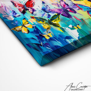 Notre tableau abstrait papillons est une danse de formes et de couleurs, où les papillons se fondent et se transforment, défiant la perception traditionnelle. Une pièce audacieuse pour les amateurs d'art abstrait.