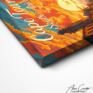 Cette œuvre rend hommage à la richesse culturelle et naturelle de l'Afrique du Sud. Grâce à une représentation de la ville du Cape, ce tableau Afrique du sud capturera l'essence unique de ce pays au sein du continent africain.