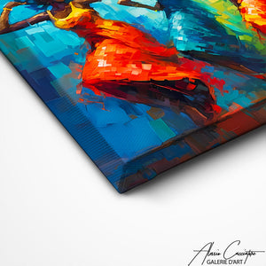 Nos toiles sont imprimées grâce à une encre spéciale resistante aux UV. Cette encre protège les couleurs au fil des années pour conserver le contraste de la peinture.