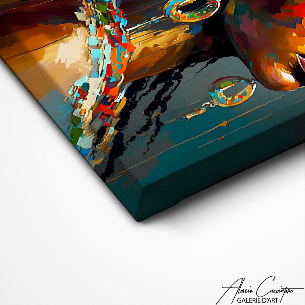Nos toiles sont imprimées grâce à une encre spéciale resistante aux UV. Cette encre protège les couleurs au fil des années pour conserver le contraste de la peinture.