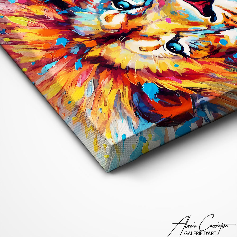 Notre tableau représente un lion majestueux au regard perçant, sublimé par des yeux bleus intenses qui captent immédiatement l’attention. La force de l’animal est accentuée par les contrastes et le réalisme saisissant. Parfait pour une déco affirmée et pleine de caractère. Ce tableau incarne puissance, sagesse et mystère.