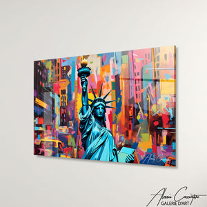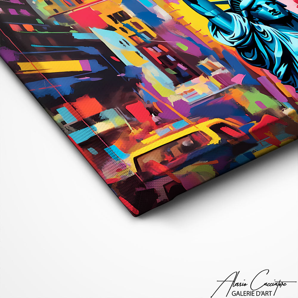 Notre tableau représente la Statue de la Liberté dans un style pop art street art explosif, mêlant graffiti, couleurs vives et énergie urbaine. L’icône new-yorkaise est revisitée avec audace et créativité. Parfait pour une décoration moderne, dynamique et affirmée. Ce tableau incarne liberté, culture et esprit artistique.
