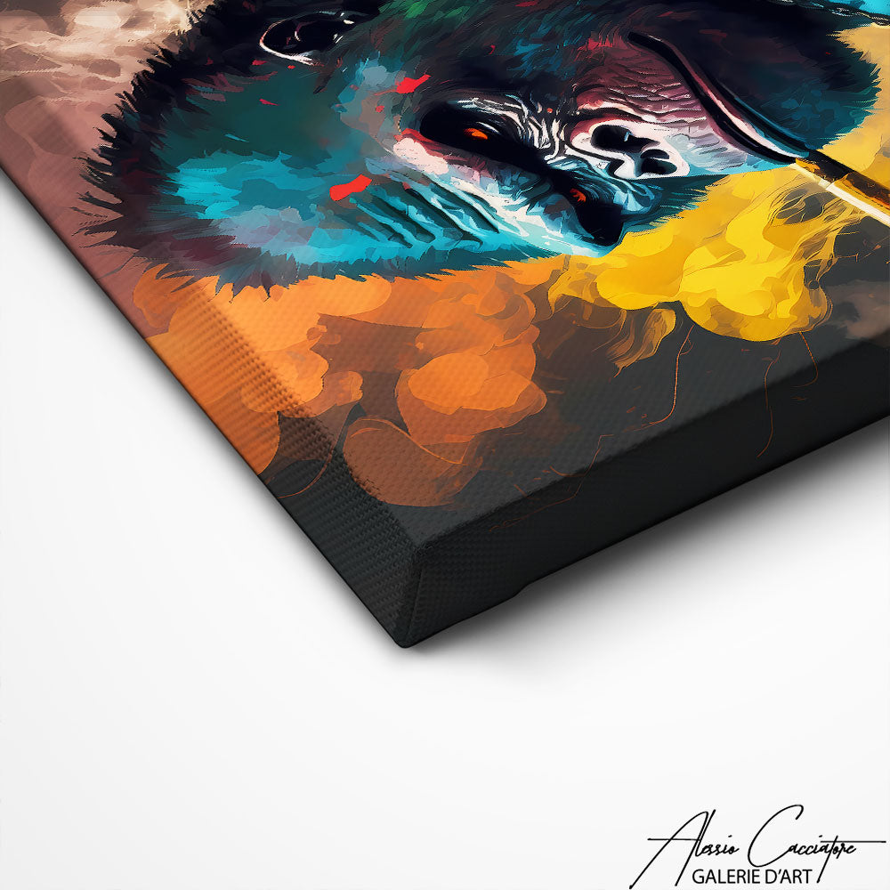 Notre tableau représente un gorille imposant, cigar à la bouche, dans un style street art audacieux et plein de caractère. Les couleurs éclatantes et les détails urbains donnent à l’animal une attitude provocante et décalée. Parfait pour une déco moderne, rebelle et stylée. Ce tableau affirme une présence forte et résolument originale.