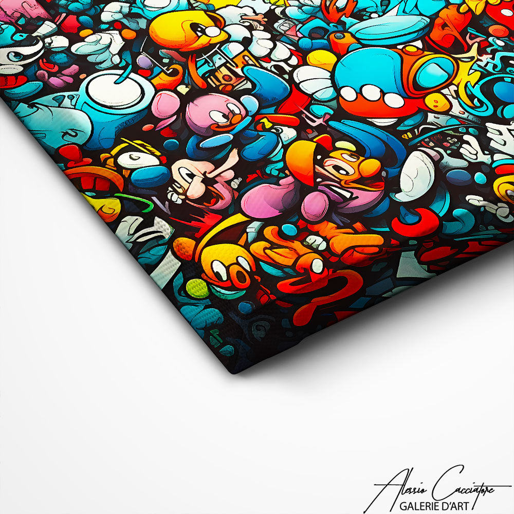 Notre tableau street art dévoile un univers rempli de doodles colorés, superposés dans un style libre et débordant d’imagination. Chaque trait raconte une histoire spontanée, entre humour, chaos et culture urbaine. Parfait pour une déco expressive et audacieuse. Ce tableau reflète la liberté d’un artiste en pleine effervescence créative.