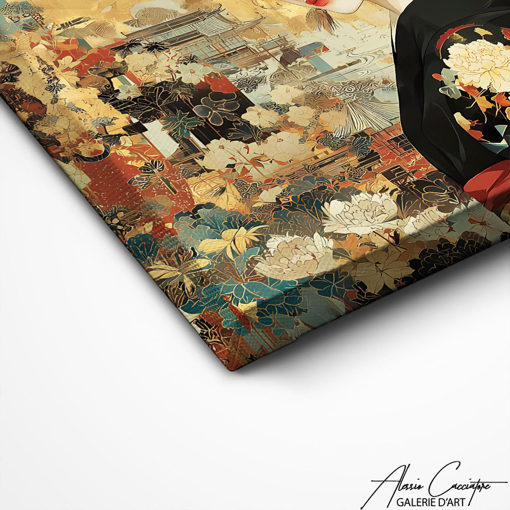 Notre toile japonaise murale met en scène une geisha samouraï charismatique, fusion parfaite entre force et raffinement. Idéale pour une déco audacieuse mêlant art traditionnel et modernité. Elle incarne l’élégance et la puissance de la culture japonaise.