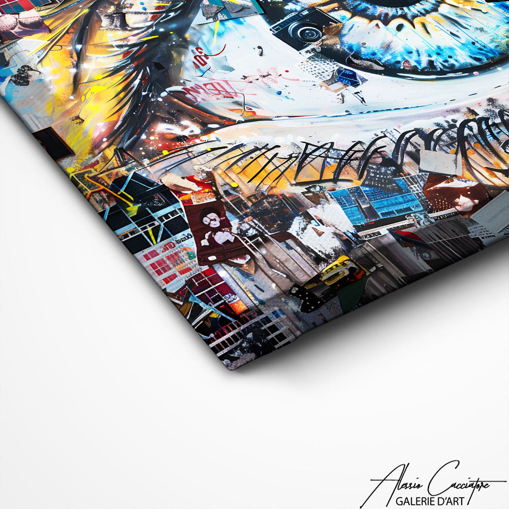 Notre tableau révèle un œil street art avec appareils photos ! Cette œuvre visuelle transforme votre espace en galerie d'art photographique urbaine. L'art street sublime la vision artistique avec modernité créative. L'art urbain qui capture l'essence !