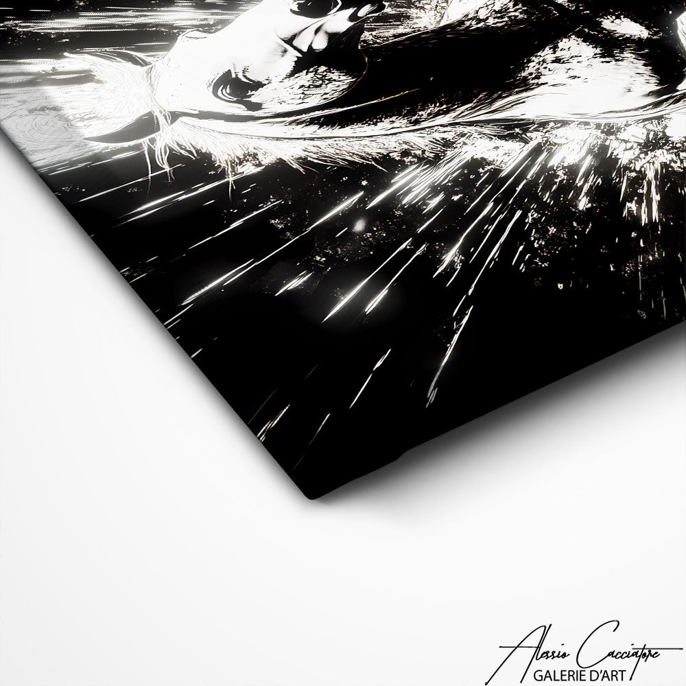 Notre tableau cheval élégant incarne la liberté et la puissance à travers un contraste saisissant en noir et blanc. Le mouvement dynamique et l’effet d’explosion visuelle donnent une énergie unique à votre mur. Parfaite pour un intérieur contemporain ou un espace masculin, elle impose une présence forte et élégante. Une décoration murale idéale pour ceux qui recherchent intensité et impact visuel.