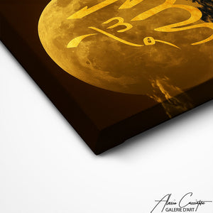 Notre tableau Allah Moderne revisite la calligraphie sacrée dans un style contemporain, avec un magnifique clair de lune doré qui illumine toute la scène. L’ensemble dégage une énergie sereine, presque mystique, idéale pour instaurer une sensation de calme dans votre espace de vie. Les nuances chaudes et profondes se mêlent aux détails raffinés pour transformer ce modèle en une pièce décorative forte et symbolique.