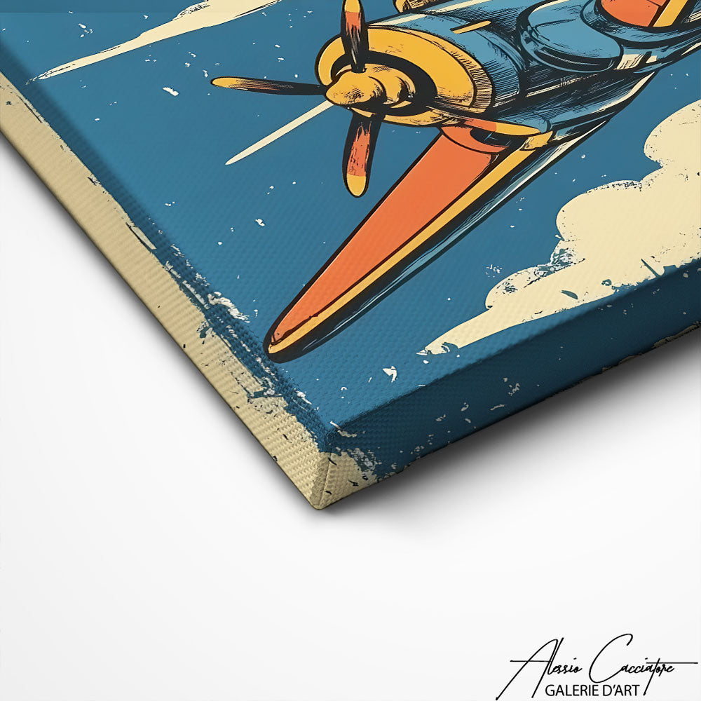 Notre tableau avion vintage met en scène un avion rétro dans un style graphique unique. Les couleurs vieillies et l’effet d’affiche ancienne donnent un charme irrésistible à cette décoration murale. Idéal pour un salon, un bureau ou une chambre à thème voyage. Un tableau qui inspire liberté, mouvement et esprit d’aventure.