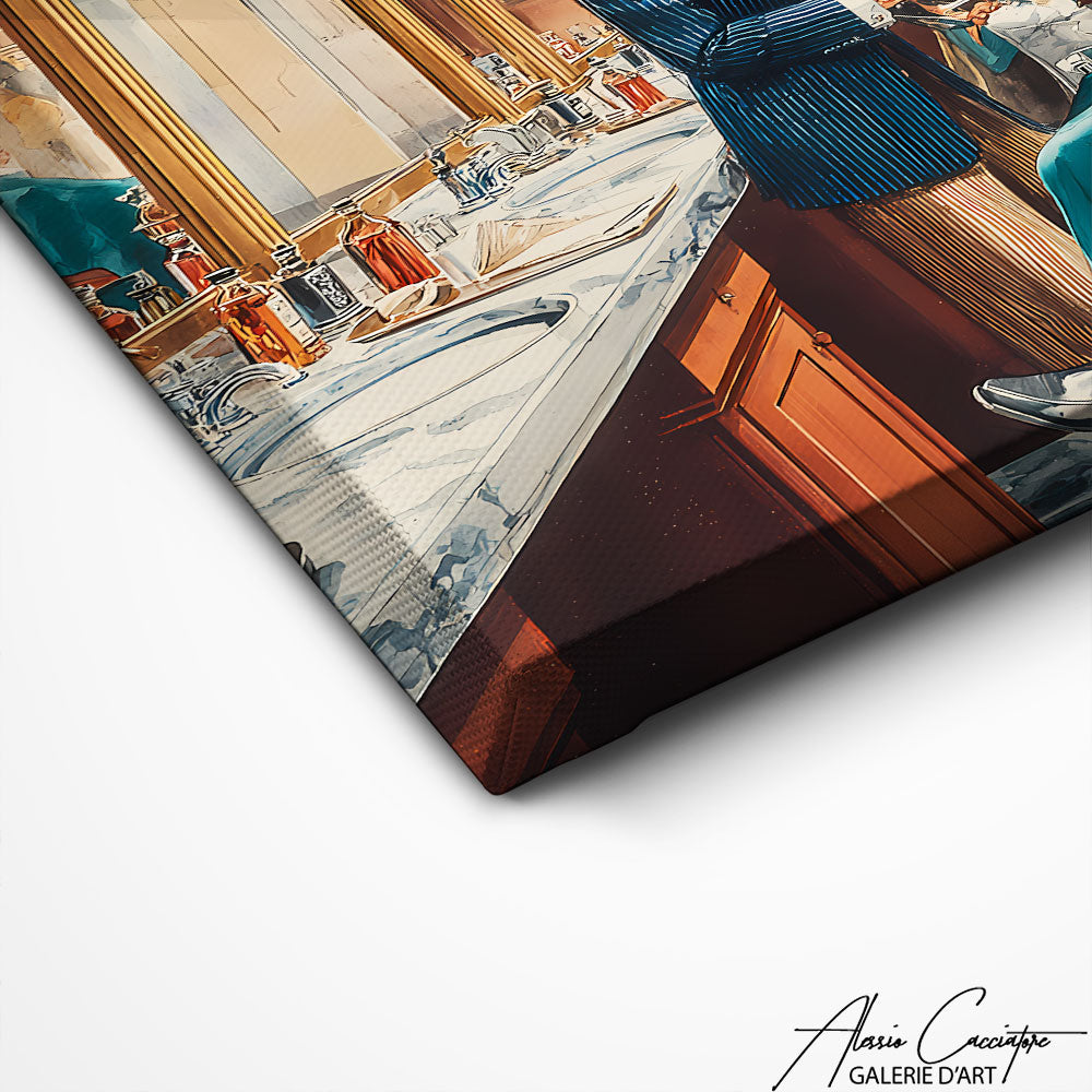 Notre tableau barbier met en scène l’univers traditionnel du grooming masculin dans une boutique authentique à l’esprit vintage. Les tons chauds, les textures réalistes et les gestes précis du barbier créent un décor plein de charme et d’élégance. Parfait pour décorer un salon professionnel, une salle de bain ou un espace masculin chic. Une pièce forte qui souligne le caractère et l’art du savoir-faire classique.