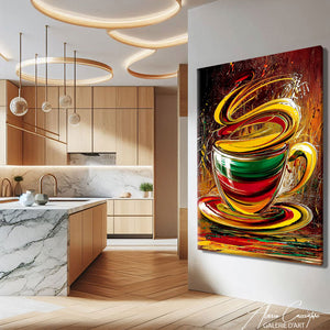 Notre tableau café bar fusionne l’univers du street art et du café dans une création abstraite audacieuse. Parfait pour un intérieur moderne ou une cuisine pleine de caractère et d’originalité. Il dynamise les murs avec une touche urbaine et créative.