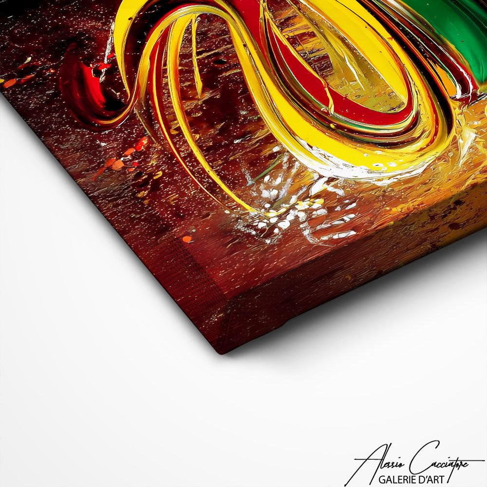 Nos toiles sont imprimées grâce à une encre spéciale resistante aux UV. Cette encre protège les couleurs au fil des années pour conserver le contraste de la peinture.