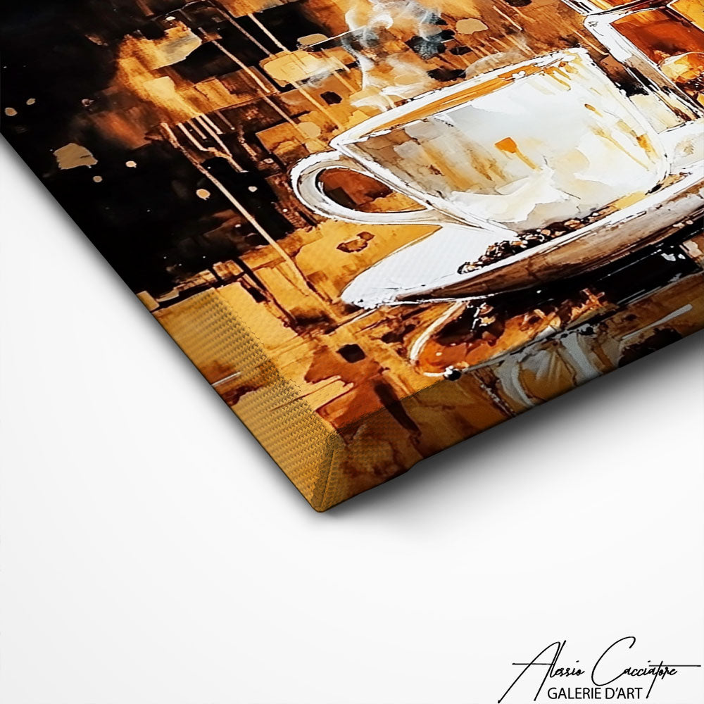Notre tableau café cuisine met en scène la chaleur d’un moment authentique autour d’un espresso fumant. Les teintes dorées et cuivrées rappellent l’arôme riche du café fraîchement préparé. Parfait pour une cuisine ou un salon à l’esprit industriel, ce modèle apporte une touche chaleureuse et conviviale à votre espace. Une invitation au plaisir simple d’une pause café bien méritée.