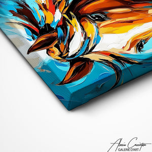 Notre tableau met en scène un cheval puissant dans un style artistique moderne et coloré. Les mouvements de la crinière et les touches picturales donnent une impression de liberté et d’énergie. Les contrastes lumineux mettent en valeur la noblesse et la force de l’animal. Une décoration murale idéale pour apporter élégance et caractère à votre intérieur.