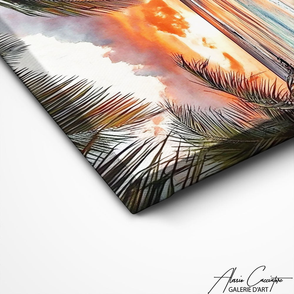 Plongez dans une ambiance apaisante avec notre tableau capturant une passerelle en bois menant à une plage paradisiaque au coucher du soleil. Les nuances chaudes se mêlent aux tons bleutés de l’océan pour offrir une décoration lumineuse et chaleureuse. Parfait pour apporter un souffle d’évasion dans un salon, une chambre ou une maison de bord de mer. Chaque pièce est soigneusement confectionnée pour offrir une qualité premium et une finition soignée.