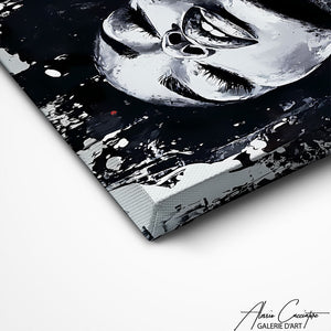 Notre tableau présente un portrait féminin en noir et blanc au style artistique expressif. Les contrastes puissants mettent en valeur les traits et les émotions du visage. L’intensité visuelle crée une atmosphère élégante et intemporelle. Parfait pour une décoration minimaliste et moderne.