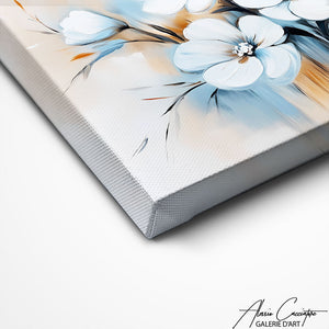 Notre tableau fleurs blanches apporte une élégance simple et raffinée à votre espace, avec des teintes neutres et apaisantes. Idéal pour une décoration minimaliste ou classique.