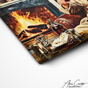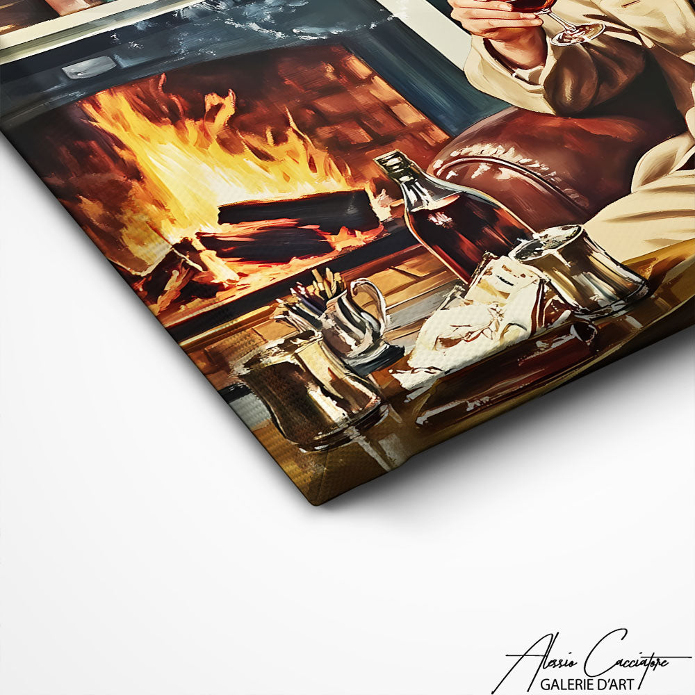 Notre tableau évoque l’élégance intemporelle d’un moment de détente au coin du feu, dans un chalet raffiné. Les teintes chaudes, le fauteuil en cuir et l’atmosphère boisée rappellent les séjours cosy en montagne. Une œuvre qui apporte instantanément une sensation de confort et de luxe à votre décoration intérieure. Parfait pour un salon, un bureau ou une pièce de caractère.