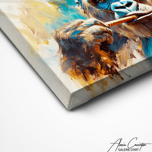 Ajoutez une touche royale et décalée à votre décoration avec ce tableau gorille cigare couronne. Représentant un gorille puissant avec un cigare et une couronne, cette œuvre unique est parfaite pour un espace qui allie humour, autorité et style.