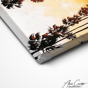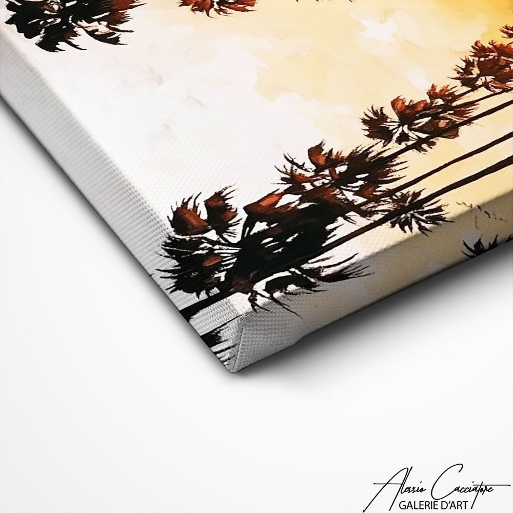 Notre tableau Los Angeles capture une avenue iconique bordée de palmiers, sublimée par un coucher de soleil éclatant. Les couleurs chaudes et l’effet de lumière reflétée créent une scène dynamique et inspirante. Idéal pour apporter une touche californienne moderne, il s’intègre parfaitement dans un salon, un bureau ou une chambre. Une création qui apporte une énergie solaire à votre décoration.
