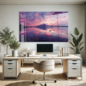 Notre tableau plexiglass montagne présente le Mont Fuji rose surréaliste ! Cette œuvre japonaise sur plexi crée une atmosphère zen et contemporaine. Les tons rosés sur plexiglass apportent douceur et sérénité à votre espace. L'art oriental moderne qui transporte vers l'harmonie !