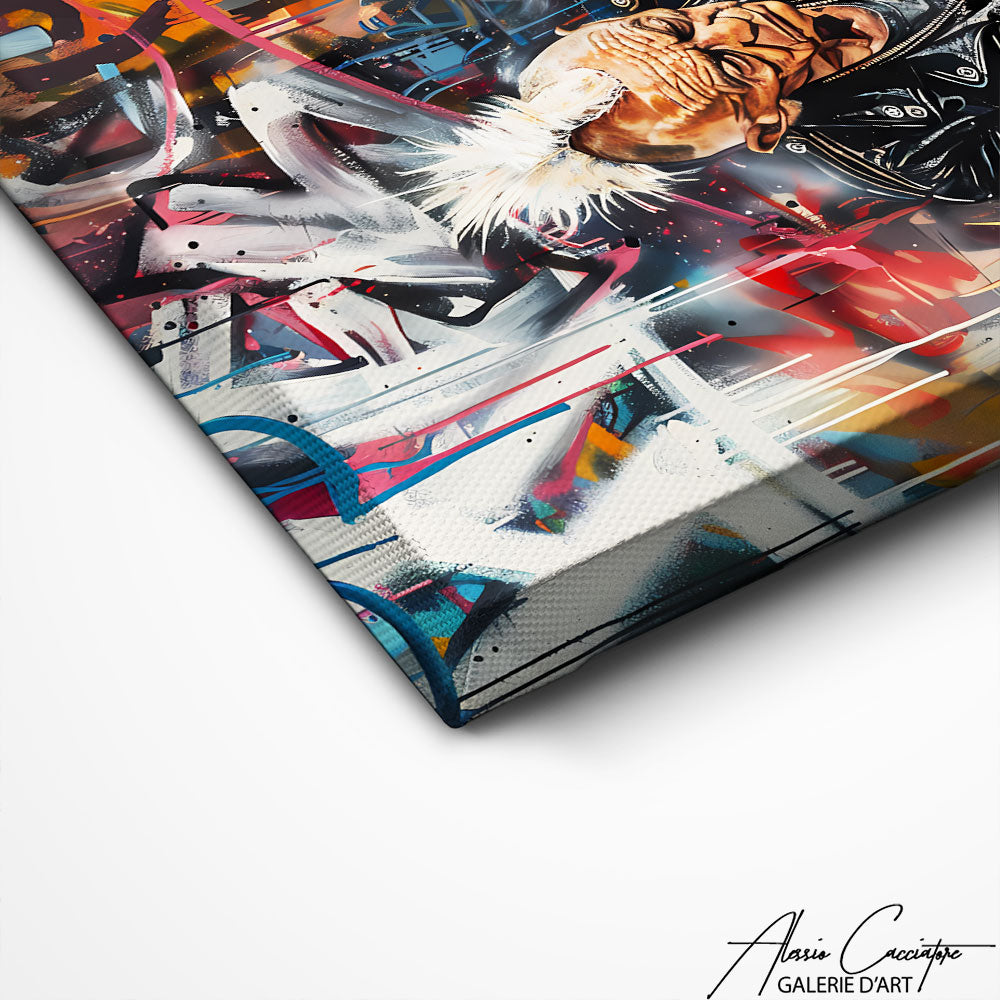 Notre tableau punk capture l’esprit rebelle avec un personnage provocateur en street art coloré. Parfait pour une décoration anticonventionnelle et affirmée, entre chaos et créativité. Un hommage visuel à la liberté d'expression et à l'attitude rock.
