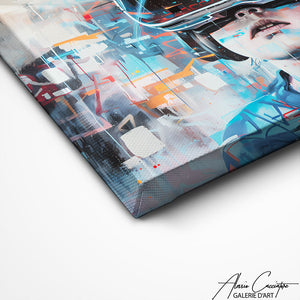 Notre tableau street art bleu révèle un enfant avec casque VR ! Cette œuvre futuriste transforme votre espace en galerie d'art urbain technologique. L'art street sublime l'enfance digitale avec modernité virtuelle saisissante. L'art urbain qui questionne !