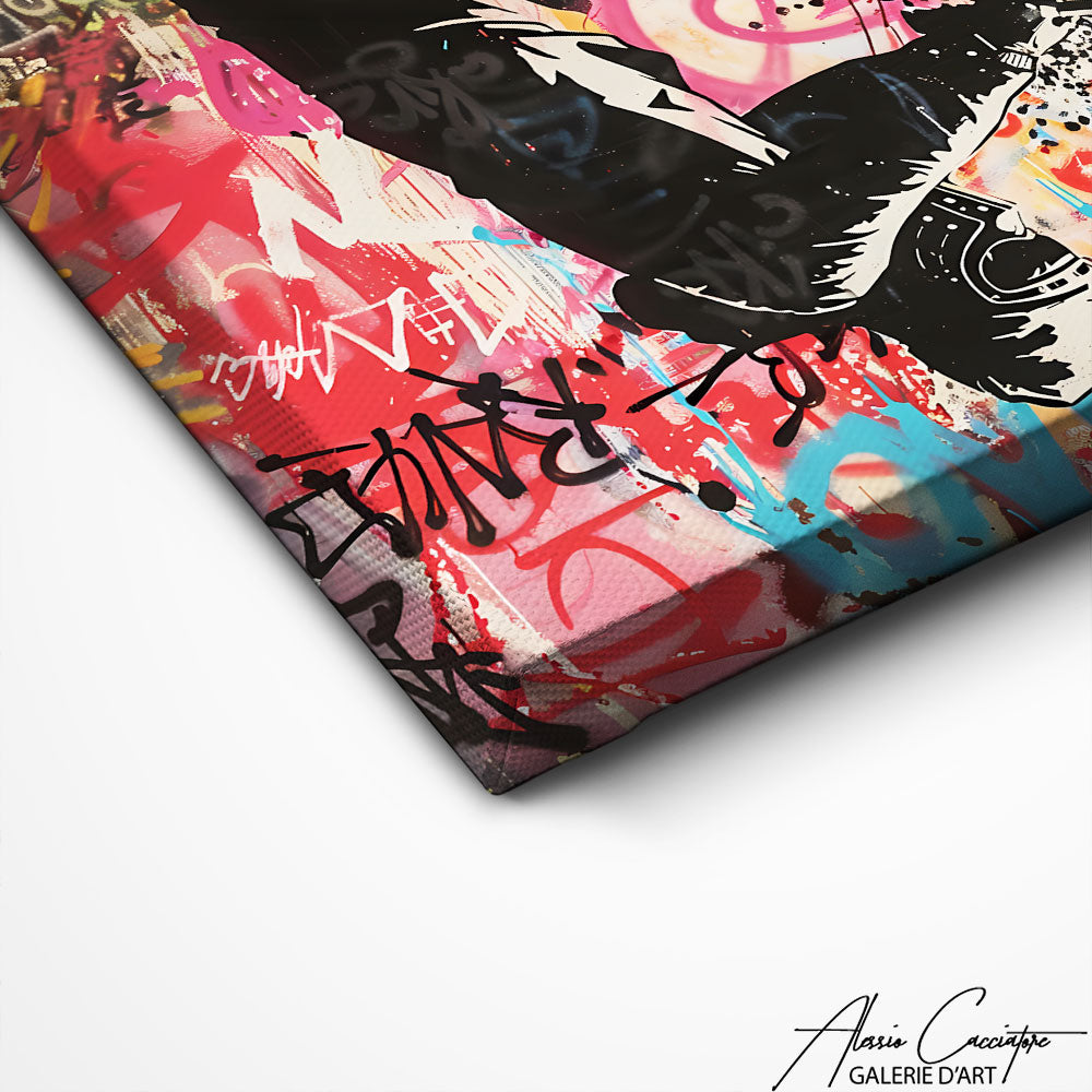 Notre tableau street art dévoile un individu masqué cassant un camion ! Cette œuvre rebelle transforme votre décoration en galerie d'art urbain contestataire. L'art street sublime la révolte avec énergie destructrice moderne. L'art urbain qui choque !