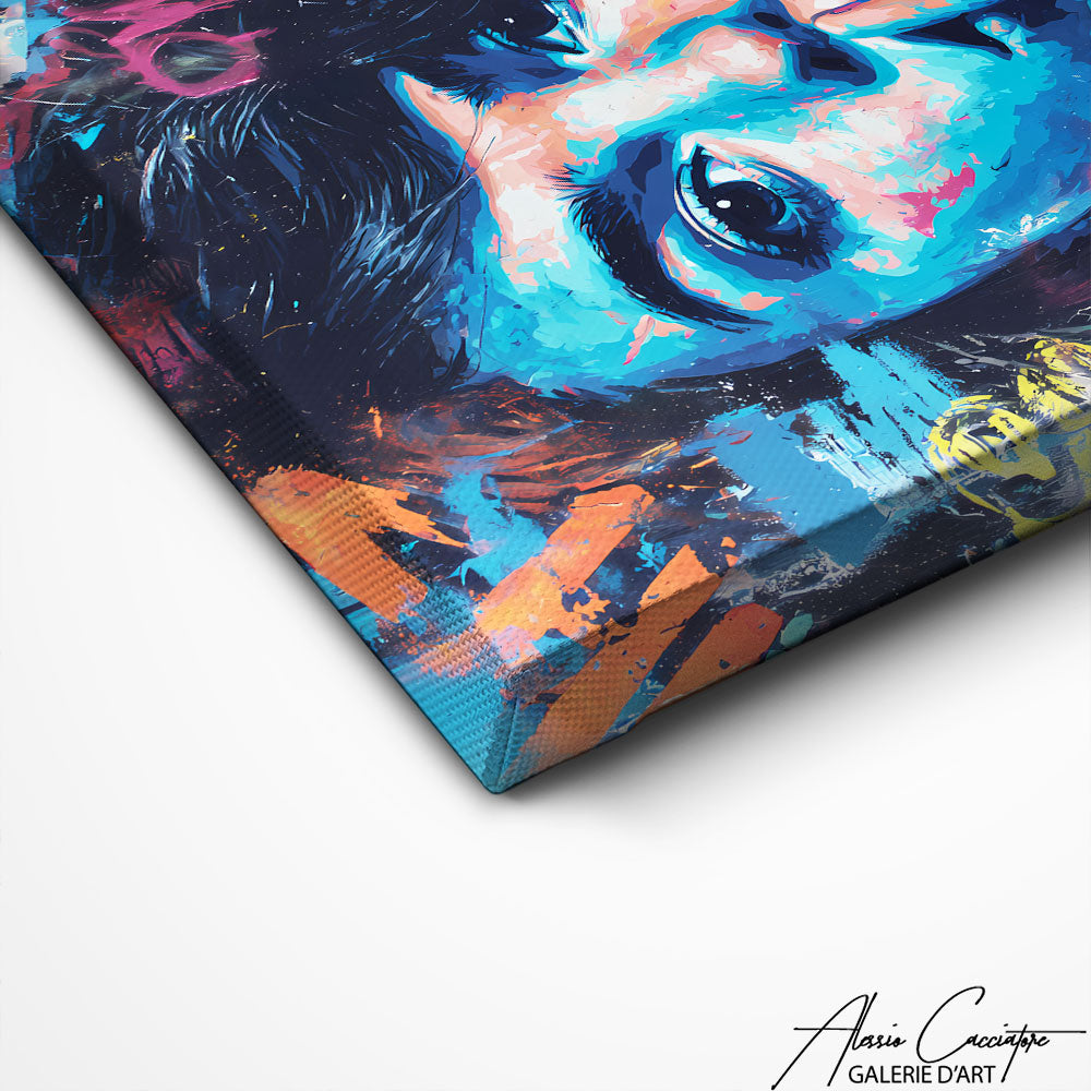 Notre tableau street art fille met en scène une femme affirmée, doigt sur les lèvres dans un "shhh" silencieux. Une toile provocante et élégante, idéale pour une déco urbaine et féminine à la fois. Ce visuel impose le calme dans le chaos avec une force captivante.