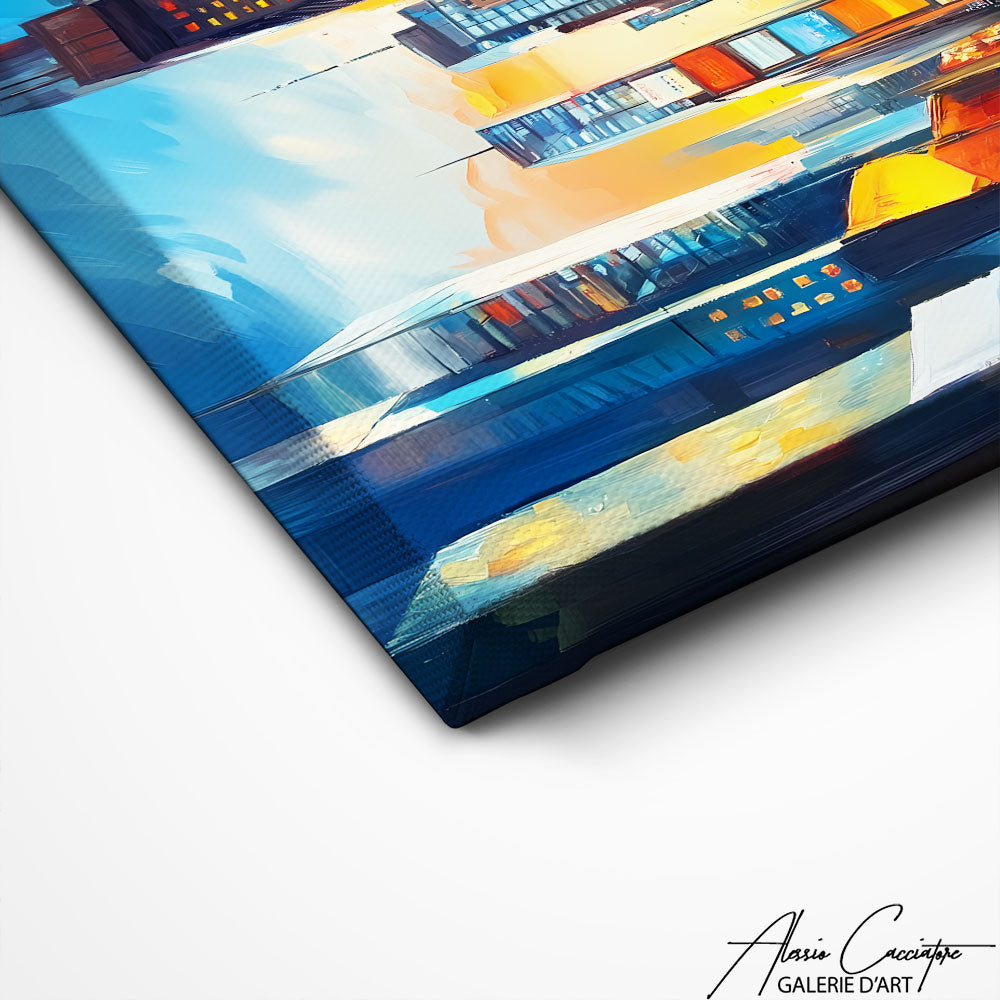 Notre tableau style urbain vous plonge au cœur d’une métropole animée, où les lumières de la ville se mêlent à l’énergie des rues. Les reflets colorés et l’intensité des contrastes évoquent la vie nocturne et la modernité. Idéal pour un intérieur contemporain, il apporte rythme et caractère à votre décoration.