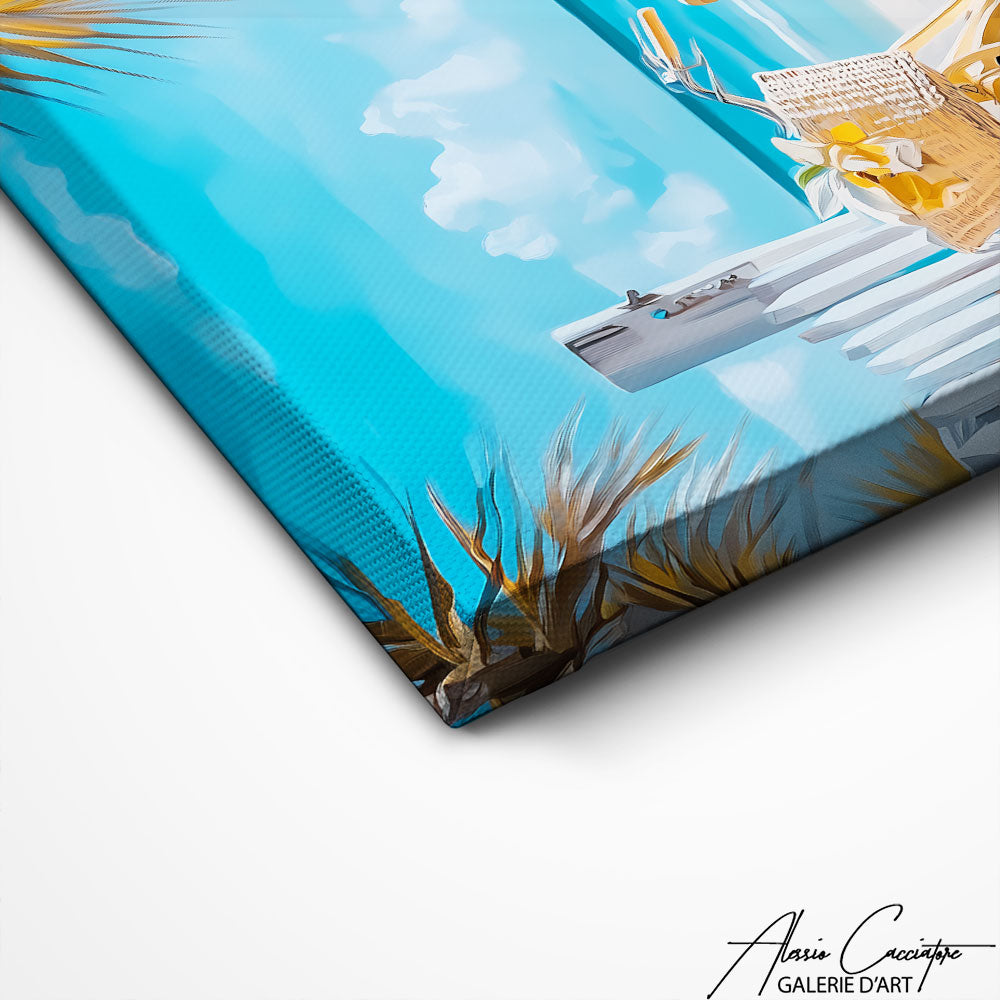 Notre tableau montre un vélo posé près d’une clôture blanche face à la mer, sous un ciel clair et lumineux. La scène évoque immédiatement l’évasion, la liberté et les promenades en bord de plage. Les couleurs claires et naturelles apportent une sensation d’air frais et de légèreté. L’équilibre entre le paysage et le sujet crée une composition harmonieuse. Idéal pour apporter une touche estivale et relaxante à votre décoration.