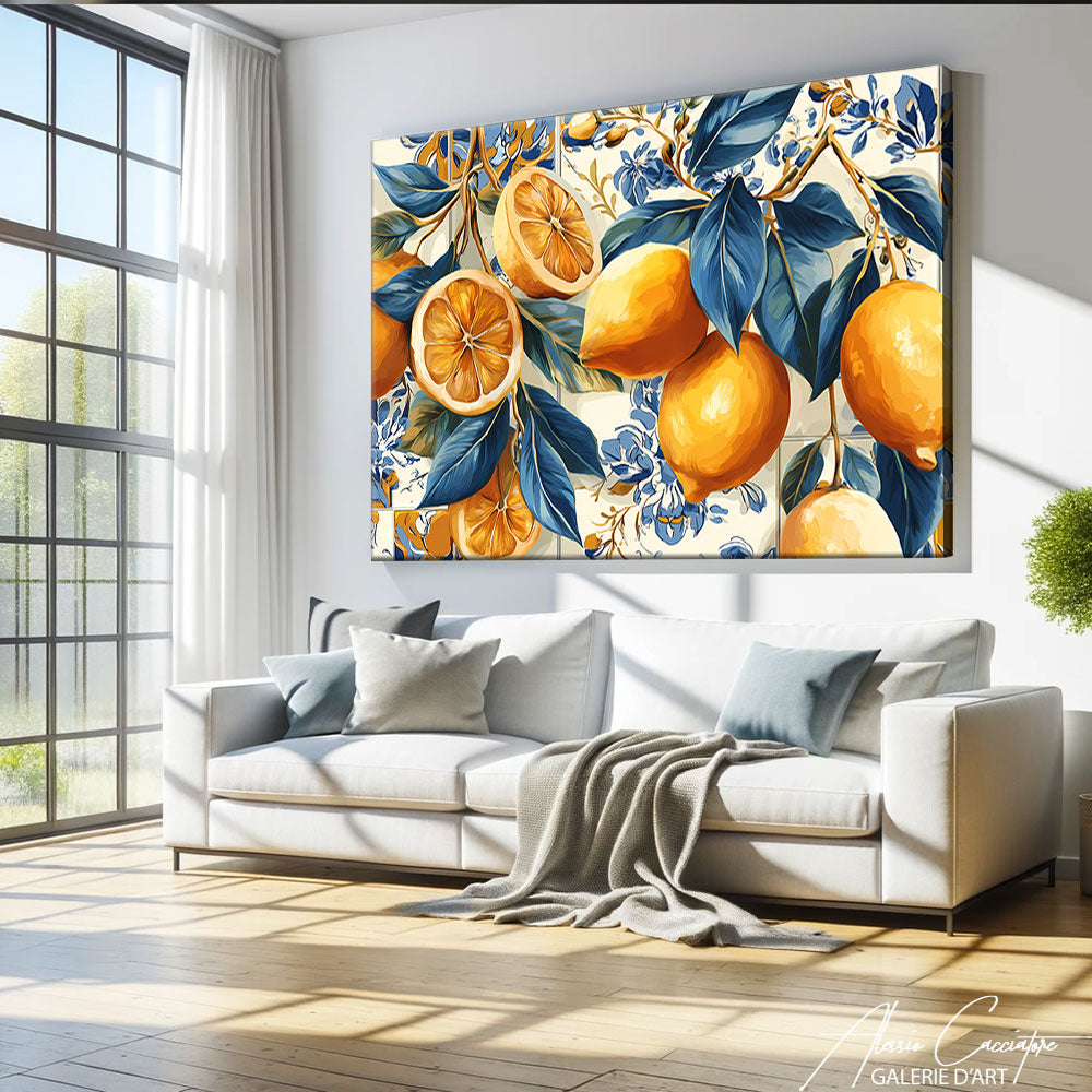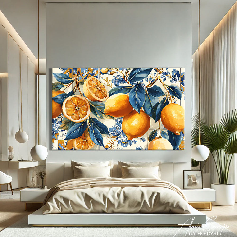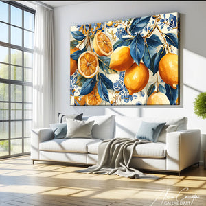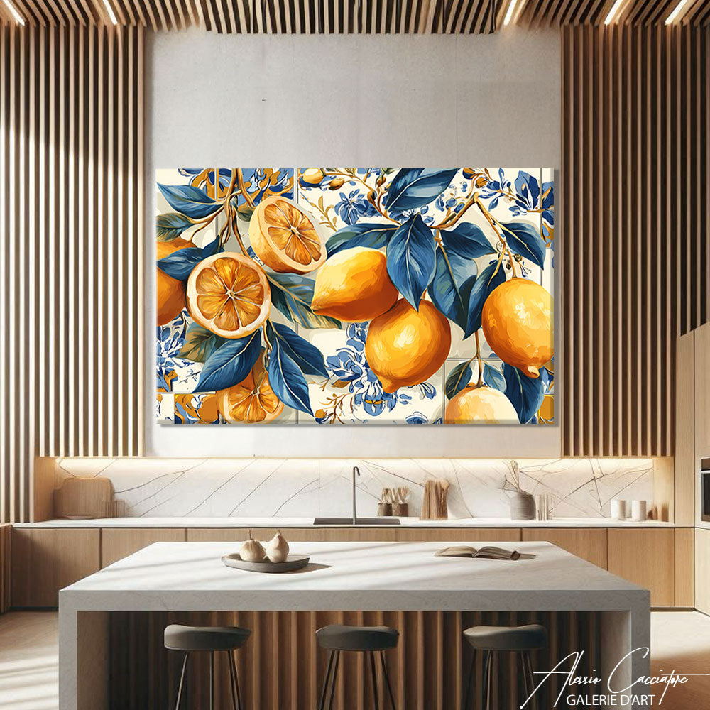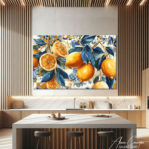 Notre tableau vintage pour cuisine dévoile des citrons très classe ! Cette œuvre fruitée transforme votre cuisine en galerie d'art citronné élégante. L'élégance naturelle des agrumes sublimée par un style contemporain raffiné. L'art fruitier qui rafraîchit !