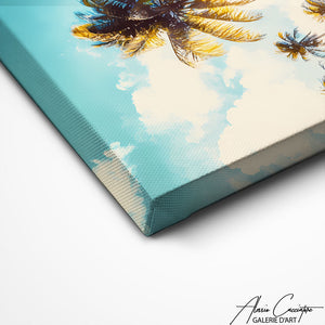Notre tableau met en scène une voiture rose décapotable roulant sous des palmiers élancés. L’ambiance rappelle les routes ensoleillées et un esprit rétro assumé. Les couleurs chaudes et lumineuses renforcent le sentiment de liberté et de style. La scène dégage une énergie positive et pleine de caractère. Parfait pour apporter une touche audacieuse et chic à votre intérieur.