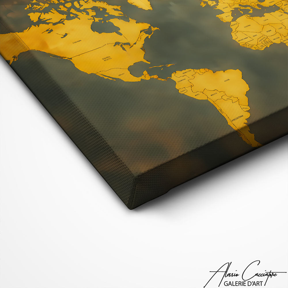 Accueil Nos Nouveautés TABLEAU MAPPEMONDE DORÉ