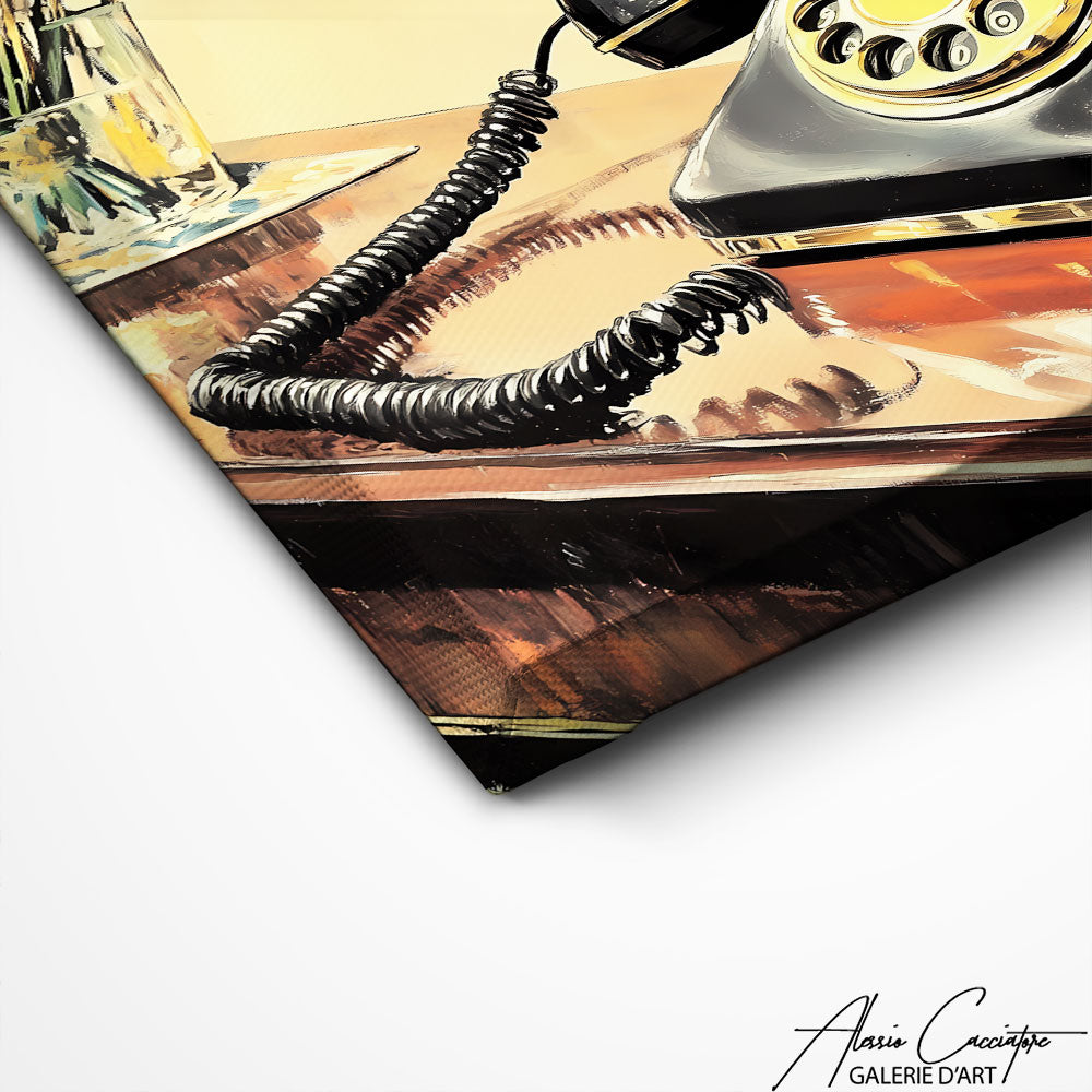 Notre tableau téléphone vintage introduit une atmosphère old-school pleine de caractère. La composition raffinée et les tons chauds en font un ajout parfait pour sublimer un intérieur classique ou moderne. Elle raconte un quotidien apaisant et nostalgique, transformant instantanément l’espace.
