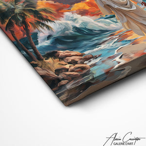 Nos toiles sont imprimées grâce à une encre spéciale resistante aux UV. Cette encre protège les couleurs au fil des années pour conserver le contraste de la peinture.