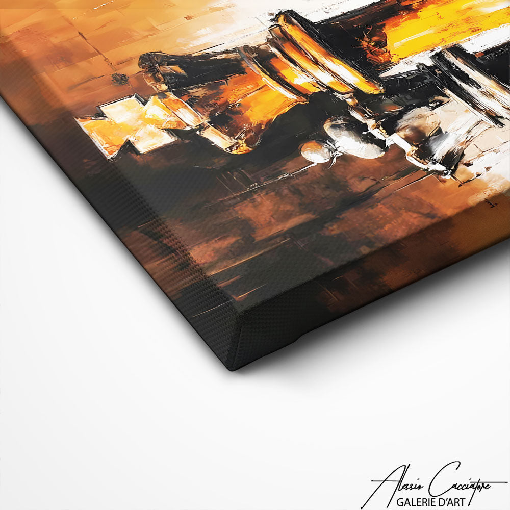 Nos toiles sont imprimées grâce à une encre spéciale resistante aux UV. Cette encre protège les couleurs au fil des années pour conserver le contraste de la peinture.