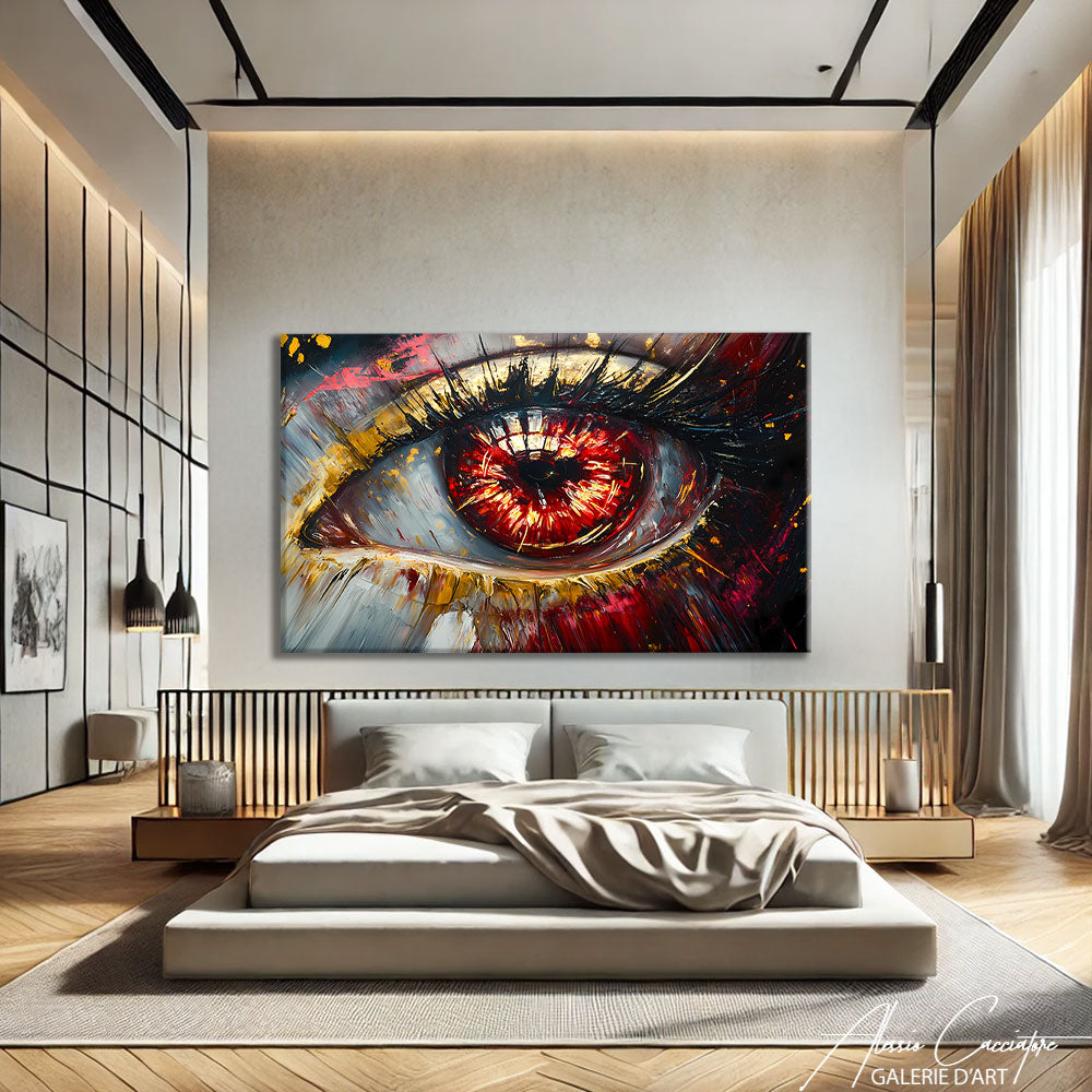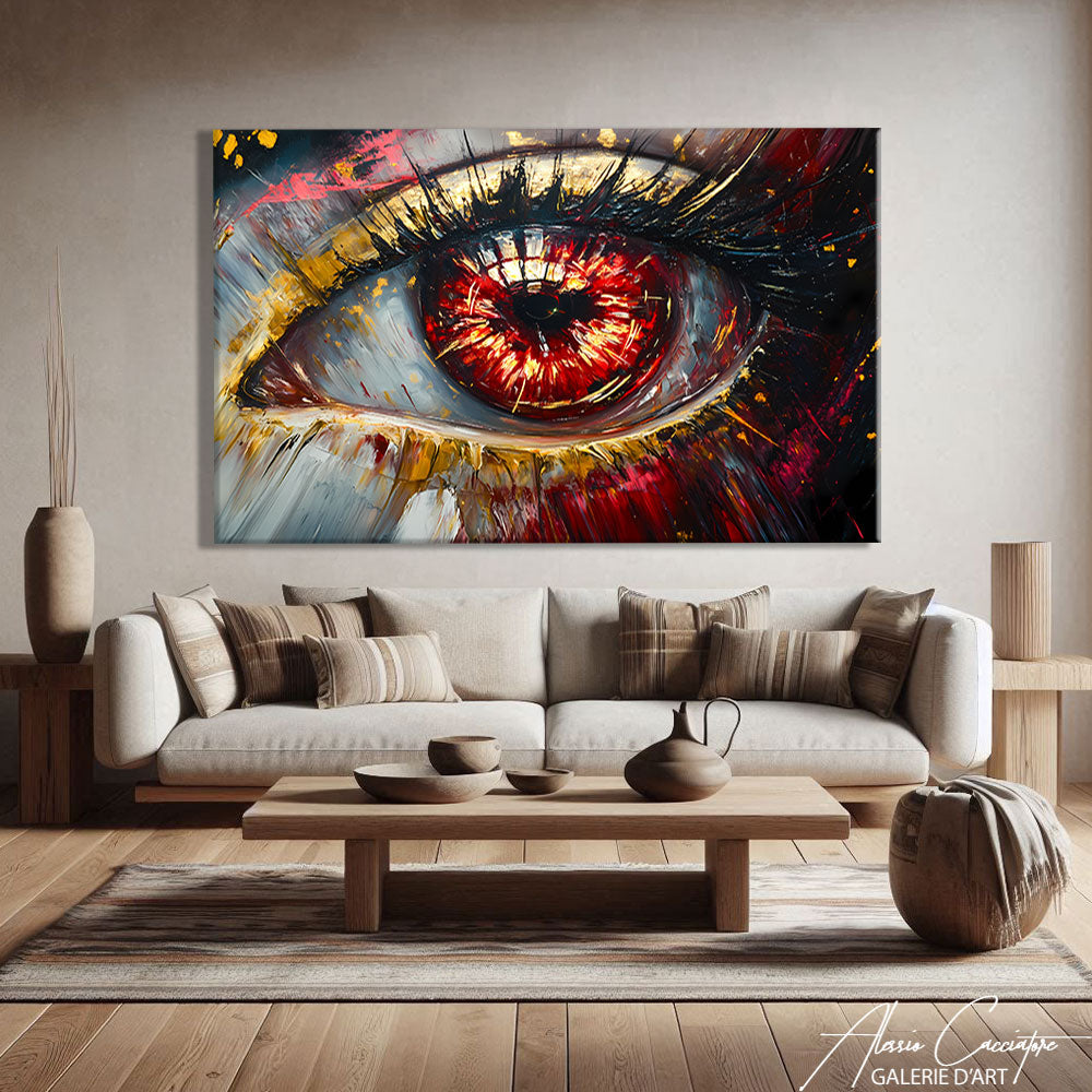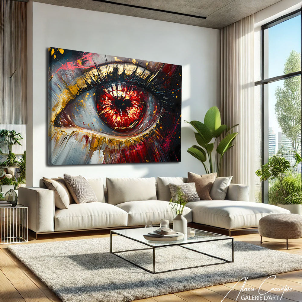 Notre tableau d'art abstrait dévoile un œil moderne saisissant ! Cette œuvre visuelle transforme votre intérieur en galerie d'art conceptuel fascinante. Ce regard artistique hypnotique devient le point focal qui intrigue vos invités. L'art contemporain qui marque les esprits !