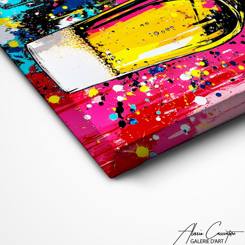 Notre tableau pour deco cuisine capture un champagne pop art ! Cette œuvre festive transforme votre cuisine en galerie d'art pétillante moderne colorée. L'effervescence sublimée par le pop art qui dynamise l'ambiance culinaire. L'art festif qui célèbre !