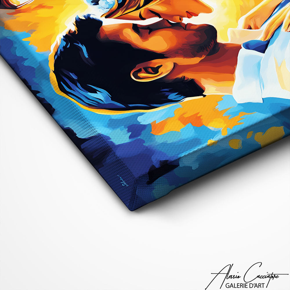 Notre tableau romantique dévoile une scène d’amour intense, portée par des couleurs chaleureuses et une composition pleine de douceur. Il parle à l’âme et au cœur, sans jamais en faire trop. Parfait pour une chambre ou un espace personnel. Ce tableau incarne le sentiment amoureux avec raffinement.