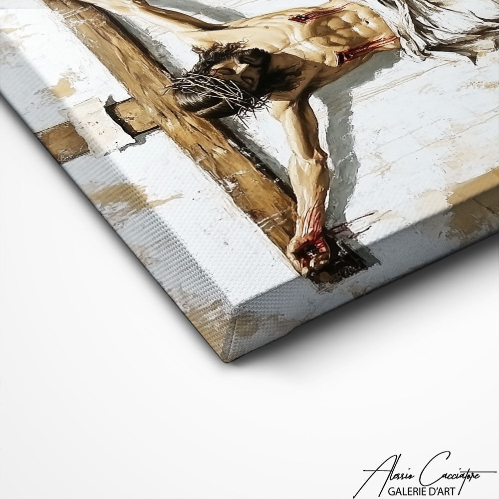 Notre tableau présente une scène sacrée chargée de solennité et de profondeur. Les expressions calmes et la composition équilibrée invitent à la contemplation. Les nuances douces renforcent l’atmosphère spirituelle et intemporelle. Idéal pour créer un espace de recueillement et de sérénité. Un tableau qui apporte une présence forte et apaisante à votre intérieur.