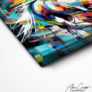 Dominant l'espace avec son ampleur, ce grand tableau de cheval est une déclaration d'audace et de beauté, offrant une présence captivante qui transforme n'importe quel environnement.
