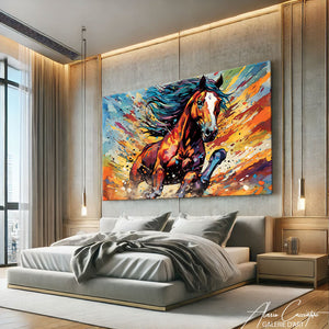 Ce tableau cheval aux multiples coloris réinvente la silhouette du cheval avec une palette vibrante et audacieuse. Chaque couleur apporte une dimension nouvelle à l'animal, symbolisant à la fois sa grâce et son énergie. Parfait pour un intérieur moderne, il injecte une touche artistique et dynamique, transformant n’importe quel espace en une scène vivante et expressive.