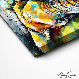Nos toiles sont imprimées grâce à une encre spéciale resistante aux UV. Cette encre protège les couleurs au fil des années pour conserver le contraste de la peinture.