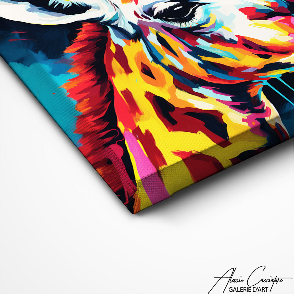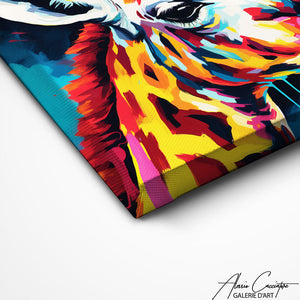 Vibrante et audacieuse, notre tableau girafe pop art est un hommage éclatant à l'art contemporain. Ses couleurs vives et son style dynamique font de cette œuvre un point focal captivant, idéal pour donner du caractère à un salon moderne ou à un bureau créatif.