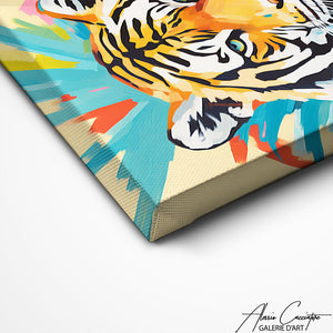 Le tableau tigre jungle est une immersion dans l'habitat naturel du tigre, où la richesse de la jungle se mêle harmonieusement à la présence imposante de l'animal. Cette œuvre crée une connexion profonde avec la nature et évoque un sentiment d'aventure et de mystère.