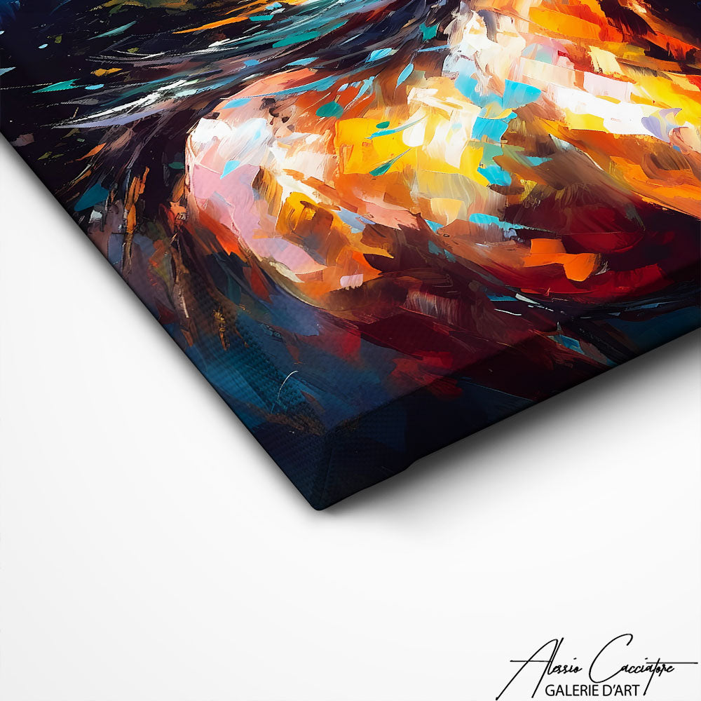 Nos toiles sont imprimées grâce à une encre spéciale resistante aux UV. Cette encre protège les couleurs au fil des années pour conserver le contraste de la peinture.